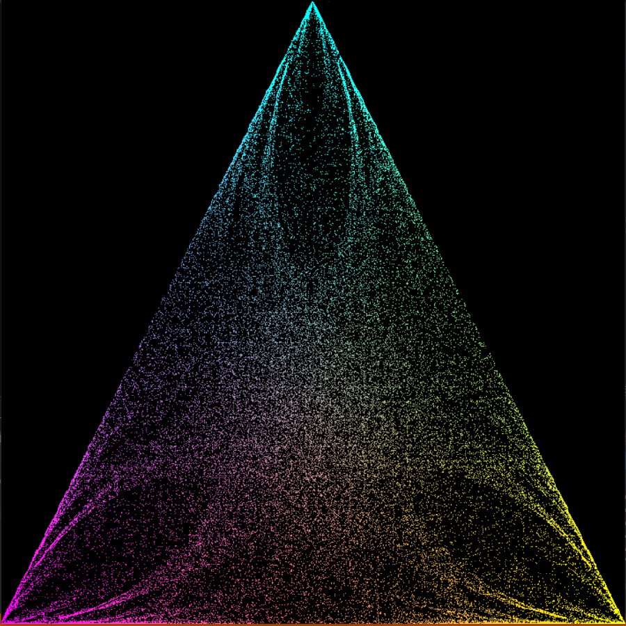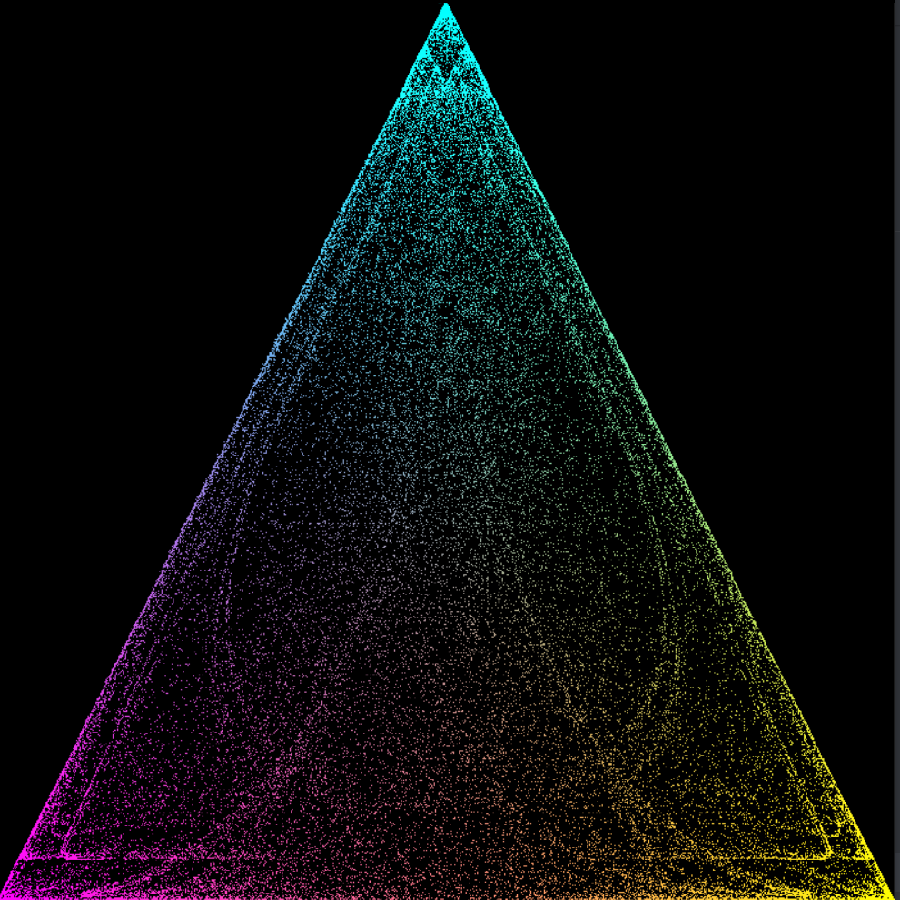 Also a school project, it was supposed to be an algorithm for generating a serpenski triangle, but I messed with the values and created some interesting artwork. Made with C++ and 90's opengl.